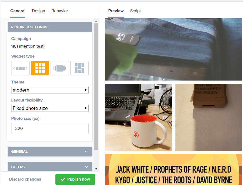 El editor de widgets le permite configurar fácilmente la apariencia y el comportamiento de los widgets que se mostrarán en tu tienda. Para una explicación detallada de todos los ajustes del editor, consulta la guía de uso del Widget Editor.